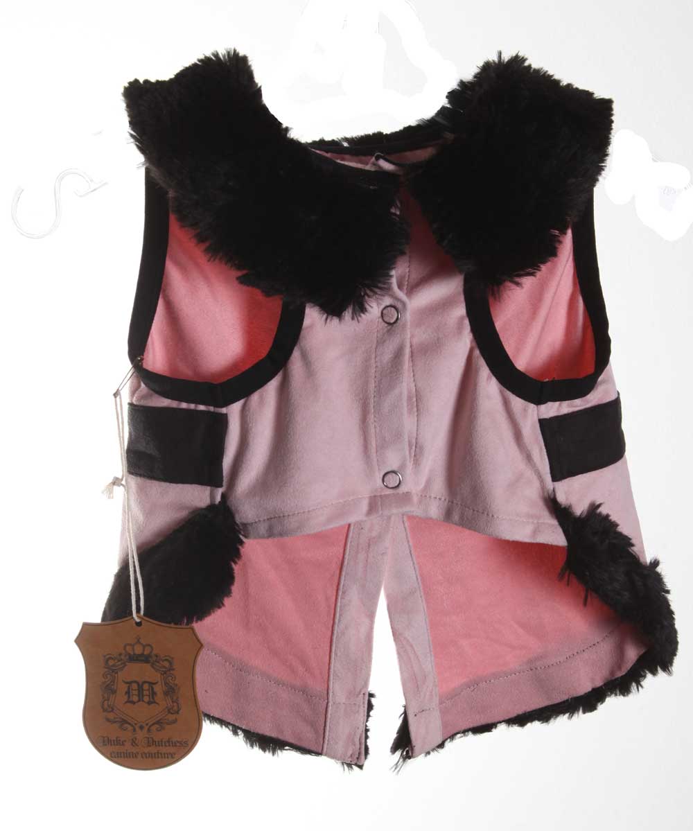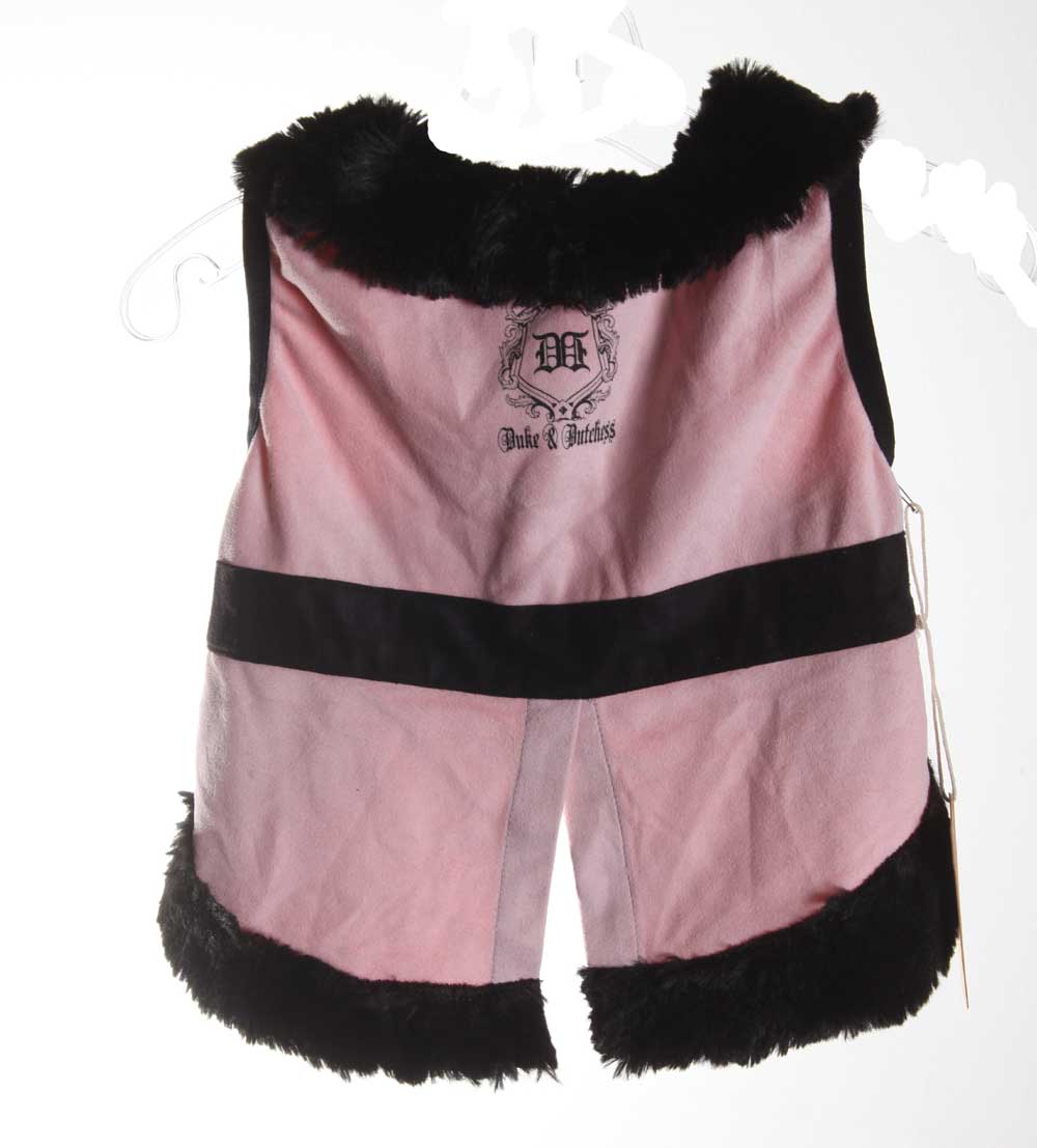 Sleeveless pink suede with fur collar and DD logo printed on the back.